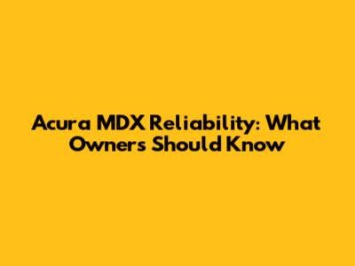 Acura MDX Reliability: What Owners Should Know