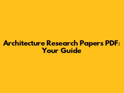 Architecture Research Papers PDF: Your Guide