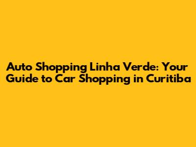 Auto Shopping Linha Verde: Your Guide To Car Shopping In Curitiba