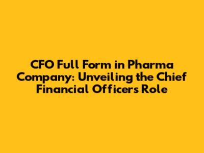 They have to navigate a complex landscape of regulations, R&D costs, and market dynamics. The CFO full form in a pharma company role is very rewarding.