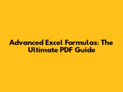 Excel Formulas: The Advanced Guide PDF
