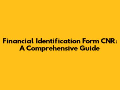 Financial Identification Form CNR: A Comprehensive Guide
