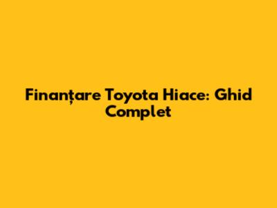 Finanțare Toyota Hiace: Ghid Complet