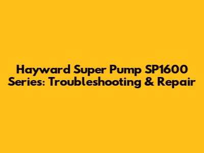 Hayward Super Pump SP1600 Series: Troubleshooting & Repair