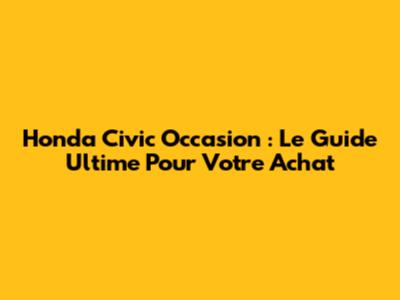 Honda Civic Occasion : Guide Complet Pour Acheter