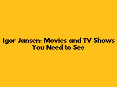 Igor Jansen: Movies And TV Shows You Need To See