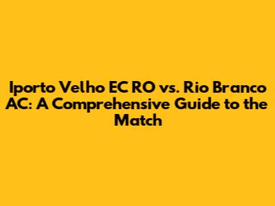 Hey guys! Let's dive deep into a thrilling matchup – Iporto Velho EC from Rondônia (RO) taking on Rio Branco AC from Acre (AC). We're going to break down everything you need to know about this exciting encounter. From team backgrounds and their current form to potential strategies and key players, we'll cover it all. So, grab your snacks, get comfortable, and let's get started. This isn't just about the game; it's about the passion, the rivalry, and the unpredictable nature of football! We'll explore the teams' histories, their recent performances, and what fans can expect when these two teams go head-to-head. Are you ready to unravel the complexities of this football clash? Let's go!