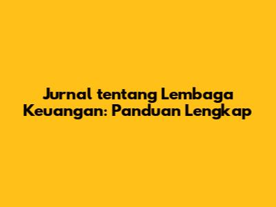 Jurnal Tentang Lembaga Keuangan: Panduan Lengkap