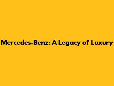Mercedes-Benz: A Legacy Of Luxury
