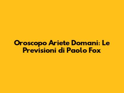 In conclusione, ragazzi dell'Ariete, le previsioni di Paolo Fox per domani suggeriscono una giornata ricca di potenzialità. In amore, puntate sulla comunicazione sincera e sulla passione, ma attenzione all'impulsività. Nel lavoro, siate audaci ma strategici, sfruttando la vostra iniziativa senza trascurare la pianificazione. Per il benessere, trovate un equilibrio tra attività e riposo, ascoltando attentamente i segnali del vostro corpo. E per la fortuna, siate proattivi nell'afferrare le occasioni che si presenteranno, mantenendo sempre un atteggiamento positivo. Domani è una giornata per agire, per osare e per credere in voi stessi. Ricordate che le stelle ci guidano, ma siamo noi a scrivere il nostro destino. Buona giornata, Ariete!