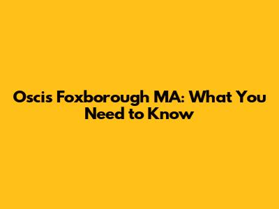 Oscis Foxborough MA: What You Need To Know