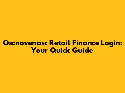 Oscnovenasc Retail Finance Login: Your Quick Guide
