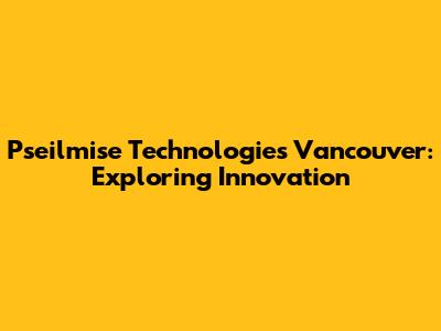 Pseilmise Technologies In Vancouver: A Deep Dive