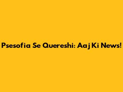 Psesofia Se Quereshi: Aaj Ki News!