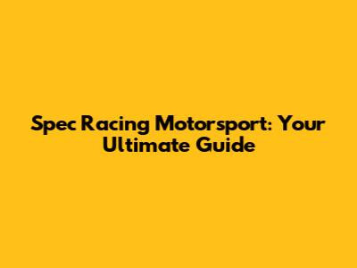Spec Racing Motorsport: Your Guide