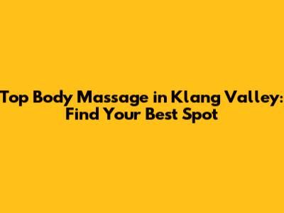 Hey guys! Feeling stressed and tight? You're not alone! We all need a good massage sometimes to unwind and rejuvenate. If you're in the Klang Valley area, you're in luck because there are tons of amazing places to get a fantastic body massage. But with so many options, how do you choose the best one? Don't worry; I've got you covered! This guide will help you navigate the world of body massages in Klang Valley and find the perfect spot to melt your stress away. Let's dive in and explore the top places, different types of massages, and what to consider when booking your appointment. After all, you deserve some serious relaxation!