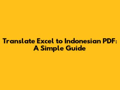 Translate Excel To Indonesian PDF: A Simple Guide
