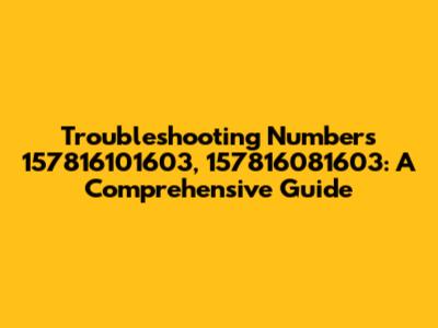 Troubleshooting Numbers 157816101603, 157816081603: A Comprehensive Guide