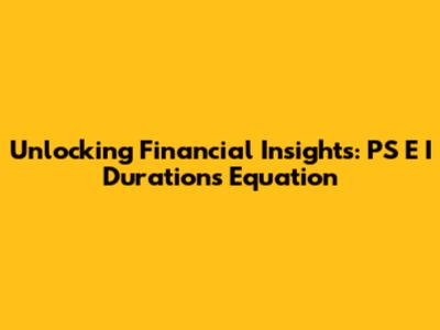 Unlocking Financial Insights: PS E I Duration's Equation