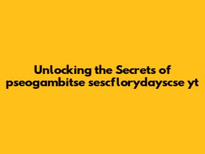 Unlocking The Secrets Of Pseogambitse Sescflorydayscse Yt