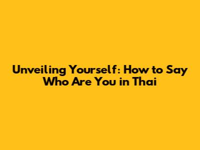 Unveiling Yourself: How To Say 'Who Are You' In Thai