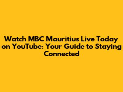 Hey guys! Are you looking to catch up on the latest news, entertainment, and cultural events from Mauritius? Well, you're in luck! MBC Mauritius, the national broadcaster, often streams its content live on YouTube. This is awesome because it means you can stay connected with everything happening on the island, no matter where you are in the world. In this article, we'll dive into how to watch MBC Mauritius live today on YouTube, explore the benefits of tuning in, and give you some tips to make the most of your viewing experience. So, grab a cup of tea, settle in, and let's get started on how to watch MBC Mauritius live today on YouTube.